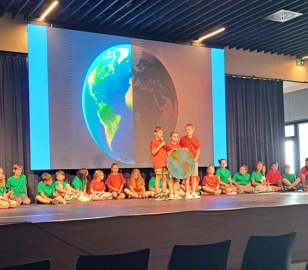 Die VS Lohnsburg nahm gemeinsam mit der VS Geinberg und der digi TNMS Altheim an dem Projekt „Klimaschulen“ teil. Rund 350 Schülerinnen und Schüler gestalteten eine außergewöhnliche und große Abschlussveranstaltung.
