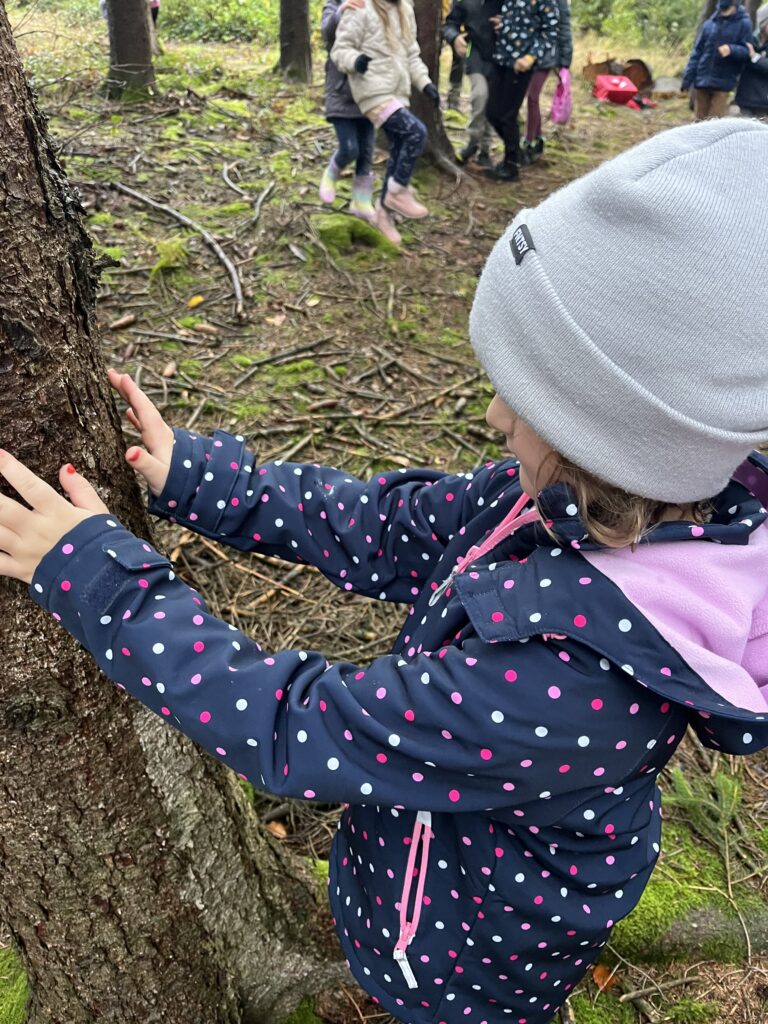 Mit allen Sinnen durften die Kinder den Wald entdecken – sie ertasteten Baumrinden, Nadeln und Blätter und spürten so die Vielfalt der Natur hautnah. Neben dem Forschen und Entdecken kamen auch Spiel und Spaß nicht zu kurz. Bei verschiedenen Gemeinschaftsspielen wurde der Zusammenhalt in der Klasse gestärkt.