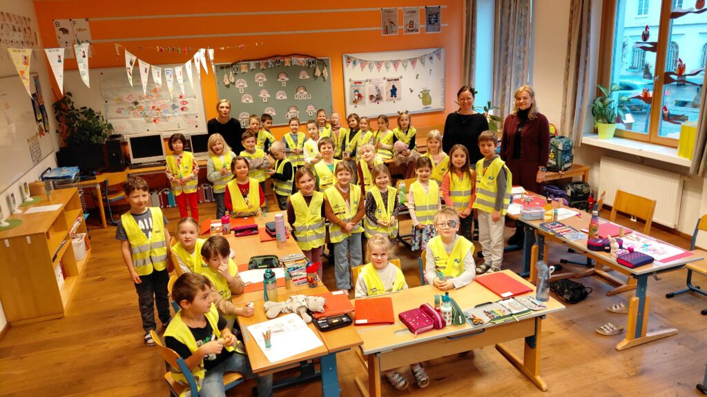Herr Reiter Markus besuchte als Zivilschutzbeauftragter die 1.Klassen um das Tragen der Kinderwarnwesten zu überprüfen. Alle SchülerInnen hatten ihre Warnwesten dabei und leisten damit einen großen Beitrag zur Verkehrssicherheit. Als Belohnung bekamen die Kinder ein kleines Geschenk.