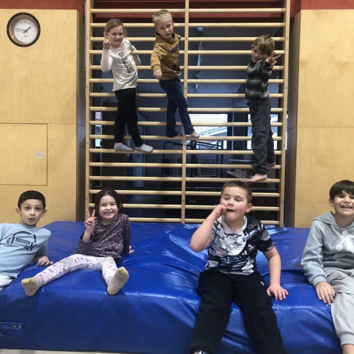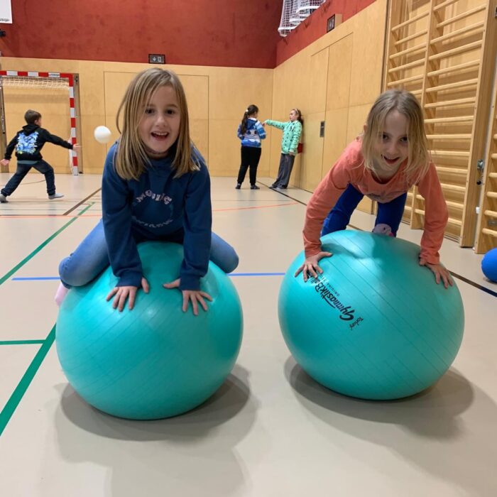 - Spiele im Turnsaal (Fußball, Völkerball, Ringe und Slack-Line)
