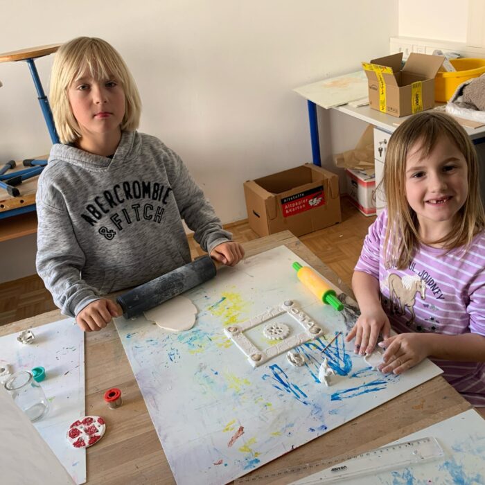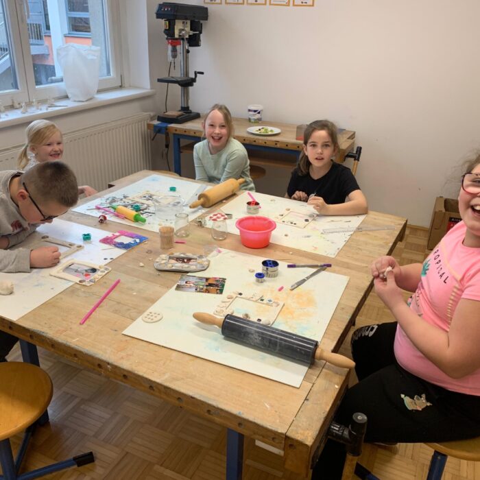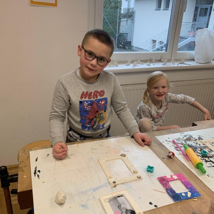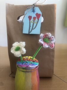 Zum Muttertag waren die Kinder kreativ und gestalteten mit viel Freude und Liebe kleine Geschenke. Aus Ton formten sie Bilderrahmen und Deckel für Blumenvasen, die sie mit selbst gehäkelten Blüten verzierten. So entstanden ganz persönliche Kunstwerke, die den Mamas ein Lächeln ins Gesicht zauberten.